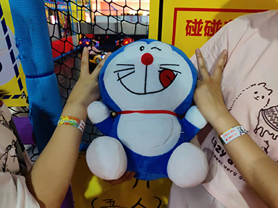 蹦沙卡拉卡,蹦沙卡拉卡,全場響起了音樂,原來是有獎競答活動,優(yōu)勝者可以選擇在全場甚至于整個倉庫選擇自己最喜愛的娃娃將心愛的它帶回家,一輪輪的比拼,我們的道婷小同志過五關(guān)斬六將,終于進(jìn)入了總決賽,最后激動人心的時(shí)刻到來了,冠軍爭奪大PK,咦一一,沒想到這么激烈的游戲最后以石頭剪刀布的方式落下帷幕,而冠軍當(dāng)然就是我們幸運(yùn)無比的道婷小同志,她選擇了最愛的哆啦A夢(晚上她一定能抱著她睡個好覺)哈哈哈哈